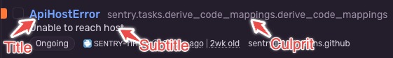 • subtitle: str: Extra detail about the issue, displayed below the issue_title